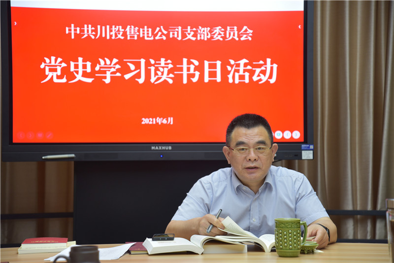 6月7日,川投售電公司黨支部在公司黨員之家開展黨史學習讀書日活動。支部書記、董事長、總經(jīng)理謝偉平主持讀書活動。