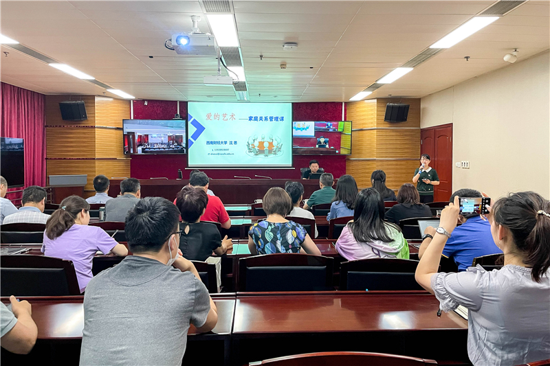 此次培訓(xùn)邀請(qǐng)了西南財(cái)經(jīng)大學(xué)沈思教授。沈思以《愛(ài)的藝術(shù)——家庭關(guān)系管理學(xué)》為主題,以歌曲《國(guó)家》中“家是最小國(guó)、國(guó)是千萬(wàn)家”為切入點(diǎn),向全體員工系統(tǒng)闡釋了家國(guó)同構(gòu)、經(jīng)營(yíng)婚姻、親子關(guān)系、家庭與事業(yè)等內(nèi)容。從理論到實(shí)踐,從書(shū)面到應(yīng)用,通過(guò)豐富的教學(xué)案例,幽默風(fēng)趣的話語(yǔ),沈思與員工在輕松無(wú)壓的氛圍中,同頻共振,同軸共轉(zhuǎn),讓大家深切感受到了家庭和諧與職業(yè)發(fā)展的密切關(guān)系,理解到了正確的婚姻家庭觀、子女教育觀、職業(yè)發(fā)展觀對(duì)家庭和睦、事業(yè)順?biāo)?、社?huì)和諧、人類和平的必要性,正如習(xí)近平總書(shū)記在論述人類命運(yùn)共同體中提到的“攥指可成拳,合力方致遠(yuǎn)”。