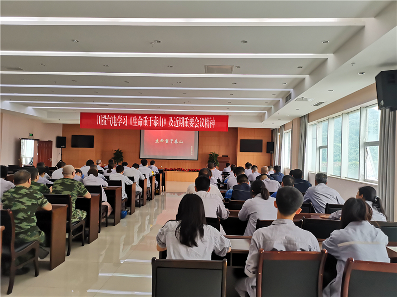 根據(jù)安全生產(chǎn)月系列活動(dòng)安排,6月21日,川投氣電公司在辦公樓六樓會(huì)議室組織觀看《生命重于泰山》電視專題片及傳達(dá)近期安全會(huì)議主要精神。公司領(lǐng)導(dǎo)班子成員及全體員工、外委維護(hù)單位有關(guān)人員共90多人參加。
