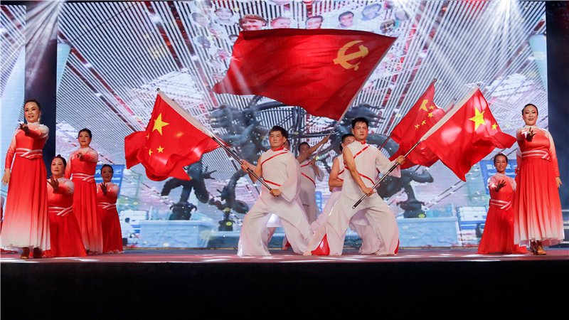 晚會(huì)在紅歌大聯(lián)唱中拉開帷幕,觀眾們隨著節(jié)奏揮舞著手中的小紅旗、熒光棒,整個(gè)體育場(chǎng)匯聚成了一片閃耀的紅色星海。舞蹈《再唱山歌給黨聽》《領(lǐng)航中國》、合唱《紅旗飄飄》《跟著共產(chǎn)黨走》、三句半《小芭蕉說黨史》、樂器合奏《盛世國樂》等16個(gè)精彩節(jié)目輪番上演,為現(xiàn)場(chǎng)觀眾帶來一場(chǎng)視覺盛宴和精神洗禮。詩朗誦《生命之花》深情并茂地謳歌了中國共產(chǎn)黨百年風(fēng)雨歷程中的英雄、先鋒以及他們的獻(xiàn)身精神,贏得了觀眾陣陣掌聲。一首激越高昂的女聲獨(dú)唱《我和我的祖國》表達(dá)了對(duì)祖國的誠摯祝愿和對(duì)美好生活的無限期盼。大災(zāi)面前有大愛,舞蹈《激流勇進(jìn)》再現(xiàn)嘉陽志愿者團(tuán)結(jié)一心、眾志成城抗洪救災(zāi),為犍為“8.18”災(zāi)后重建貢獻(xiàn)嘉陽力量的動(dòng)人場(chǎng)景。新時(shí)代征程無限光明,強(qiáng)國使命催人奮進(jìn),舞蹈《燃燒吧,嘉陽》將煤礦“燃燒精神”展現(xiàn)的淋漓盡致,煥發(fā)出獨(dú)特的時(shí)代魅力,傳承紅色基因,堅(jiān)定理想信念,凝聚奮進(jìn)力量,激勵(lì)嘉陽兒女砥礪前行再出發(fā)。