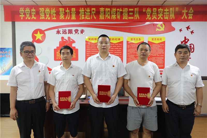 嘉陽集團扎實開展黨史學(xué)習(xí)教育,高度重視黨建工作與安全生產(chǎn)的有機結(jié)合,充分發(fā)揮黨員在班組中的示范引領(lǐng)作用,不斷夯實基層黨建堡壘作用。今年,礦井掘進任務(wù)異常繁重,困難重重,嘉陽煤礦掘進三隊黨支部于4月1日成立了“黨員突擊隊”,以“學(xué)黨史、強黨性、聚力量、推進尺”為主題,通過“固堡壘、亮形象、保安全、促生產(chǎn)”的“三亮”“三評”活動,鼓舞干勁、凝聚力量,全力打好“進尺任務(wù)”這場硬仗。突擊隊員們迎難而上,積極想辦法、添措施,充分發(fā)揮黨員的先鋒模范作用,團結(jié)和帶領(lǐng)全隊職工發(fā)揚“特別能吃苦、特別能戰(zhàn)斗”的優(yōu)良作風(fēng),在確保安全的前提下,保質(zhì)保量完成了所有突擊任務(wù)。通過考評評選出“突擊能手”“創(chuàng)新能手”“安全之星”三名先進個人。