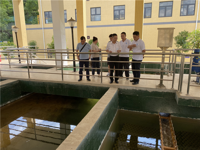 7月14日,川投水務集團黨委副書記、總經理鄧銳率經營管理部部長王鎮(zhèn)、安全環(huán)保部部長馬玉斌到川投船重一枝山污水處理廠督導生態(tài)環(huán)境保護工作。川投船重董事長劉祝,建設安全部經理李軍,綜合管理部經理張梅等相關人員陪同督導。