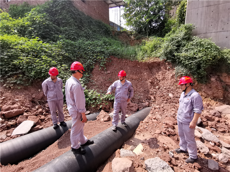 公司黨委副書記、總經(jīng)理梁紅兵帶隊(duì)深入現(xiàn)場開展“拉網(wǎng)式”排查,對(duì)廠區(qū)重點(diǎn)管控區(qū)域、圍墻、邊坡、排水溝進(jìn)行檢查,并對(duì)廠外天然氣管線、取水管線、架空線路等重點(diǎn)區(qū)域進(jìn)行實(shí)地查看,對(duì)取水泵房圍墻外滑坡區(qū)域加固情況進(jìn)行了重點(diǎn)檢查,要求現(xiàn)場值班人員要重點(diǎn)監(jiān)控滑坡區(qū)域,隨時(shí)跟蹤趨勢(shì)變化情況,有異常時(shí)及時(shí)避險(xiǎn),并匯報(bào)處置。在檢查取水管線時(shí),重點(diǎn)查看了天河污水處理廠處取水管線上覆土被洪水沖走管段,梁紅兵要求相關(guān)職能部門,要及時(shí)跟地方政府相關(guān)部門溝通協(xié)調(diào),盡快恢復(fù)管道裸露部分覆土事宜。