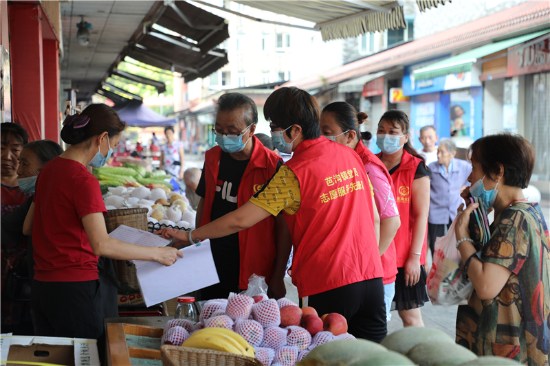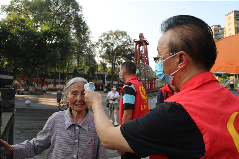 “請佩戴好口罩,掃一掃場所碼……謝謝您的配合!”8月3日,嘉陽集團綜合服務(wù)公司黨總支的黨員志愿者和芭溝社區(qū)志愿者共同開展疫情防控宣傳。