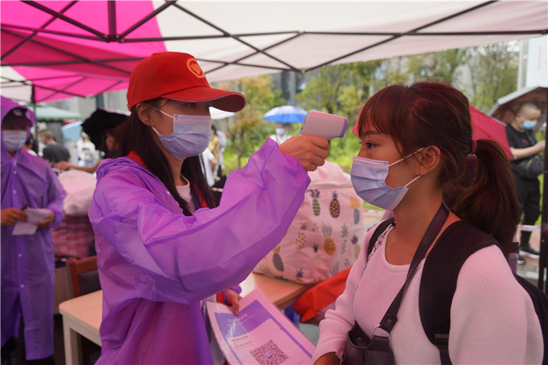 迎新期間,學(xué)院嚴(yán)格落實(shí)疫情防控常態(tài)化的各項(xiàng)工作舉措,在校門口設(shè)置等候區(qū)、掃碼區(qū)、測溫區(qū)、預(yù)檢分診處、臨時(shí)隔離點(diǎn)、核酸檢測區(qū)以及省內(nèi)省外專用入校通道,由專人負(fù)責(zé)查驗(yàn)健康防疫碼、通信行程卡、保證防控?zé)o遺漏安全放心。完成全部流程后,新生由志愿者引導(dǎo)至各系部報(bào)到處辦理相關(guān)手續(xù)?,F(xiàn)場,各有關(guān)部門分工協(xié)作,牢固樹立以學(xué)生為本的教育、管理和服務(wù)理念,為新生提供優(yōu)質(zhì)熱情的服務(wù)保障。