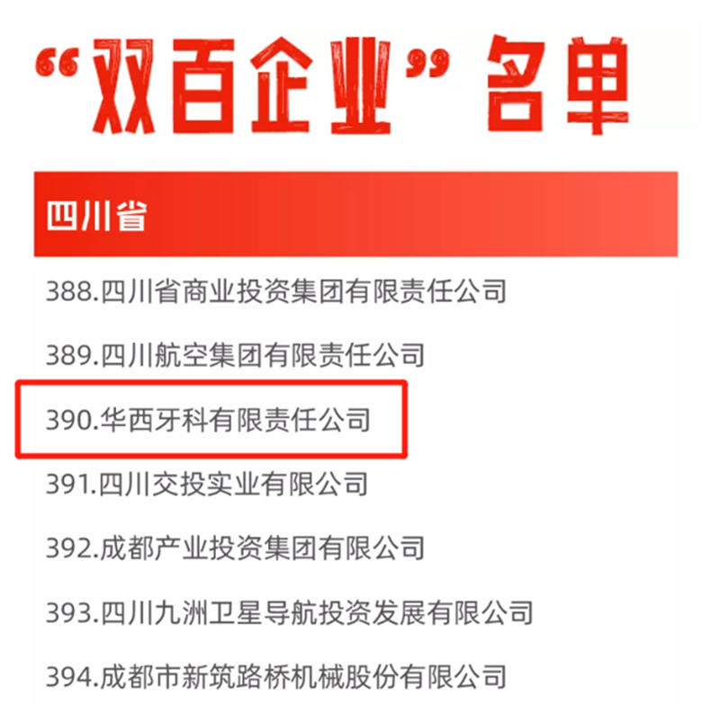 根據(jù)國(guó)企改革三年行動(dòng)和“雙百企業(yè)”推進(jìn)計(jì)劃和前期試點(diǎn)工作評(píng)估,國(guó)務(wù)院國(guó)資委官網(wǎng)日前公布了最新的“雙百企業(yè)”名單,川投集團(tuán)控股的華西牙科有限責(zé)任公司持續(xù)入列國(guó)企改革“雙百行動(dòng)”四川省企業(yè)試點(diǎn)單位。