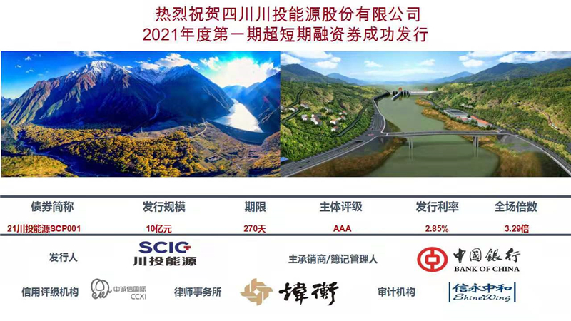 11月8日,川投能源公司首期270天超短期融資券10億元成功發(fā)行,利率2.85%(低于部分當(dāng)日同期銀行業(yè)同業(yè)存單利率)。